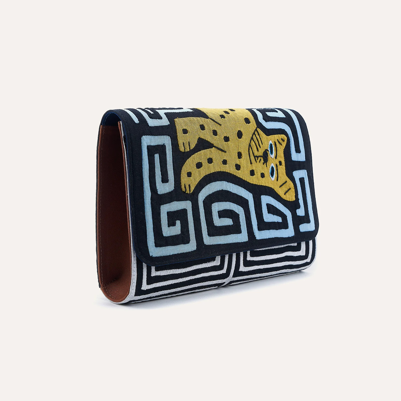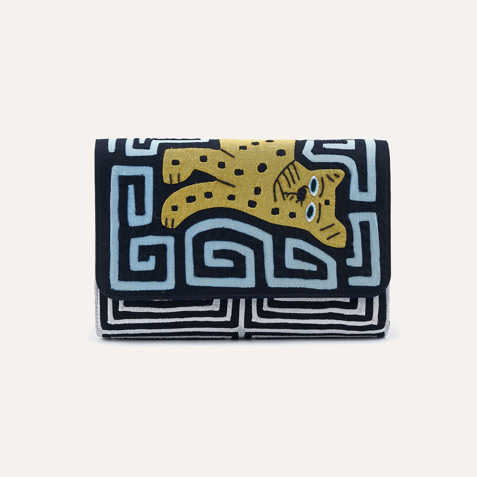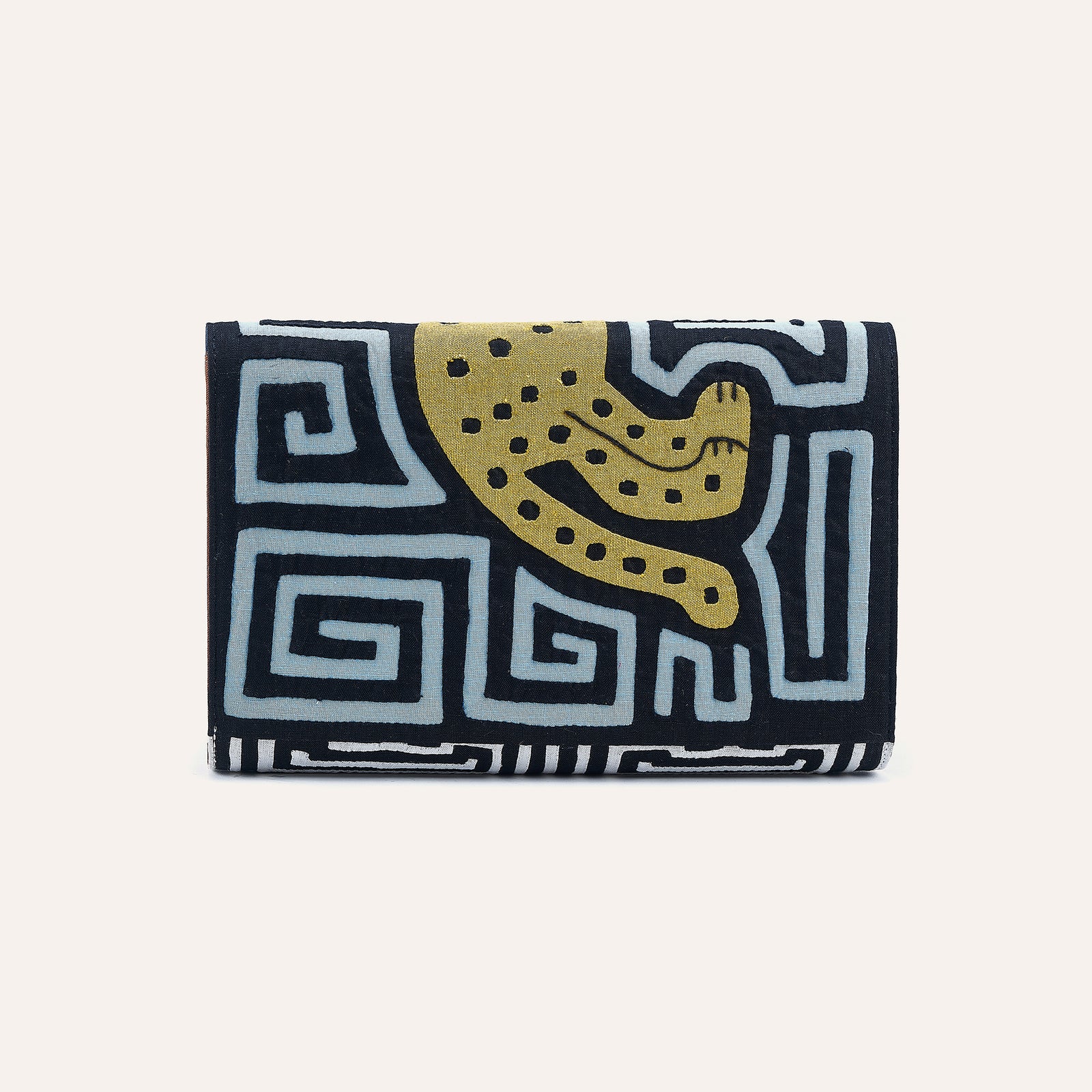 King of the tropics and guardian of the jungle, mountains, and deserts, the jaguar is a sacred and powerful symbol across Indigenous cultures throughout the Americas. In this design, the Gunadule of Colombia honor the majesty of this revered animal through intricate textile work created exclusively for Mola Sasa.