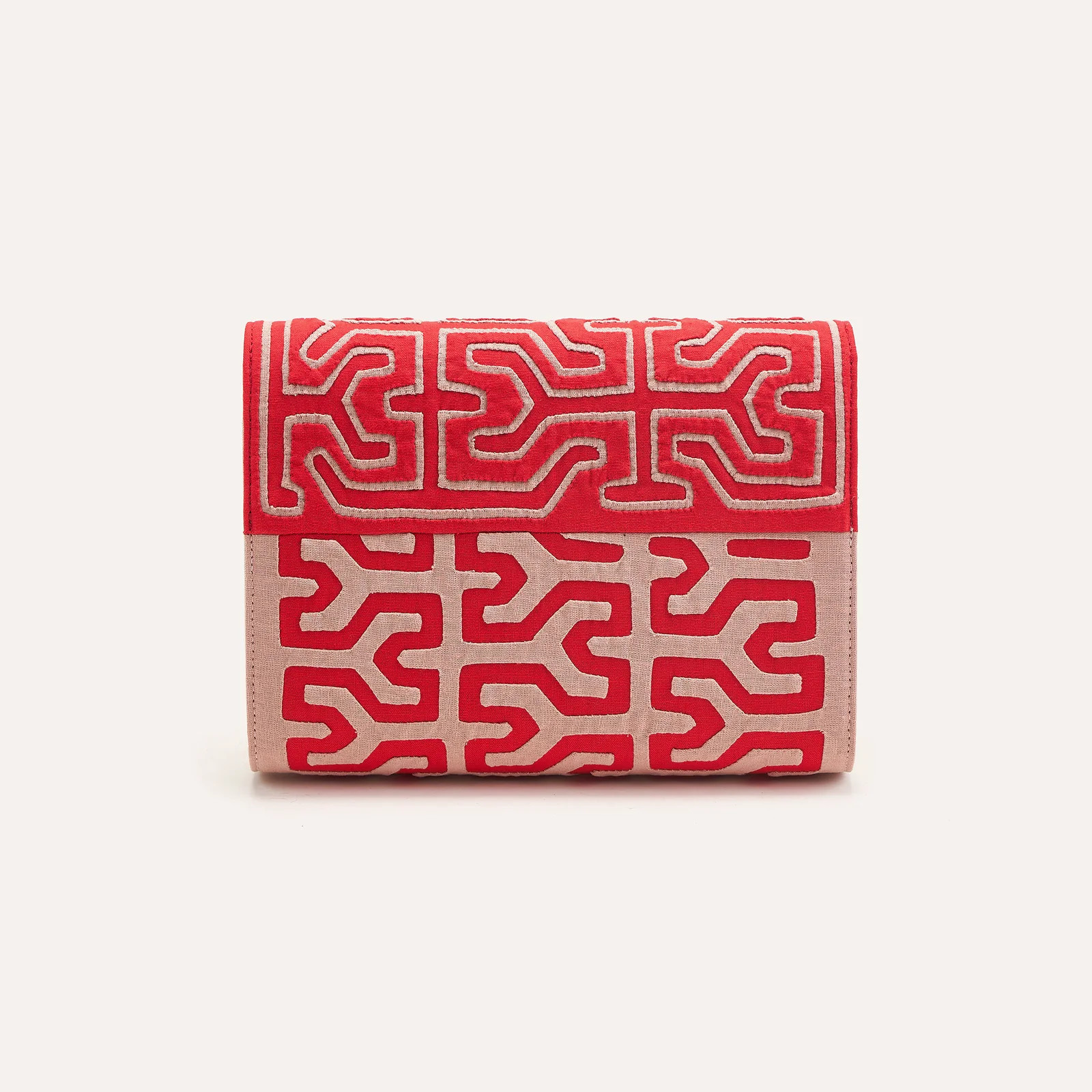 Bursting with the energy of the Colombian tropics, the Red Guacamaya Clutch features a vibrant appliqué of a macaw, known locally as a guacamaya, set against a backdrop of intricate abstract patterns. Inspired by the colorful birds that fill Colombia’s jungle canopies, this playful yet bold piece is both a celebration of biodiversity and a striking accessory that brings joy and flair to any look.