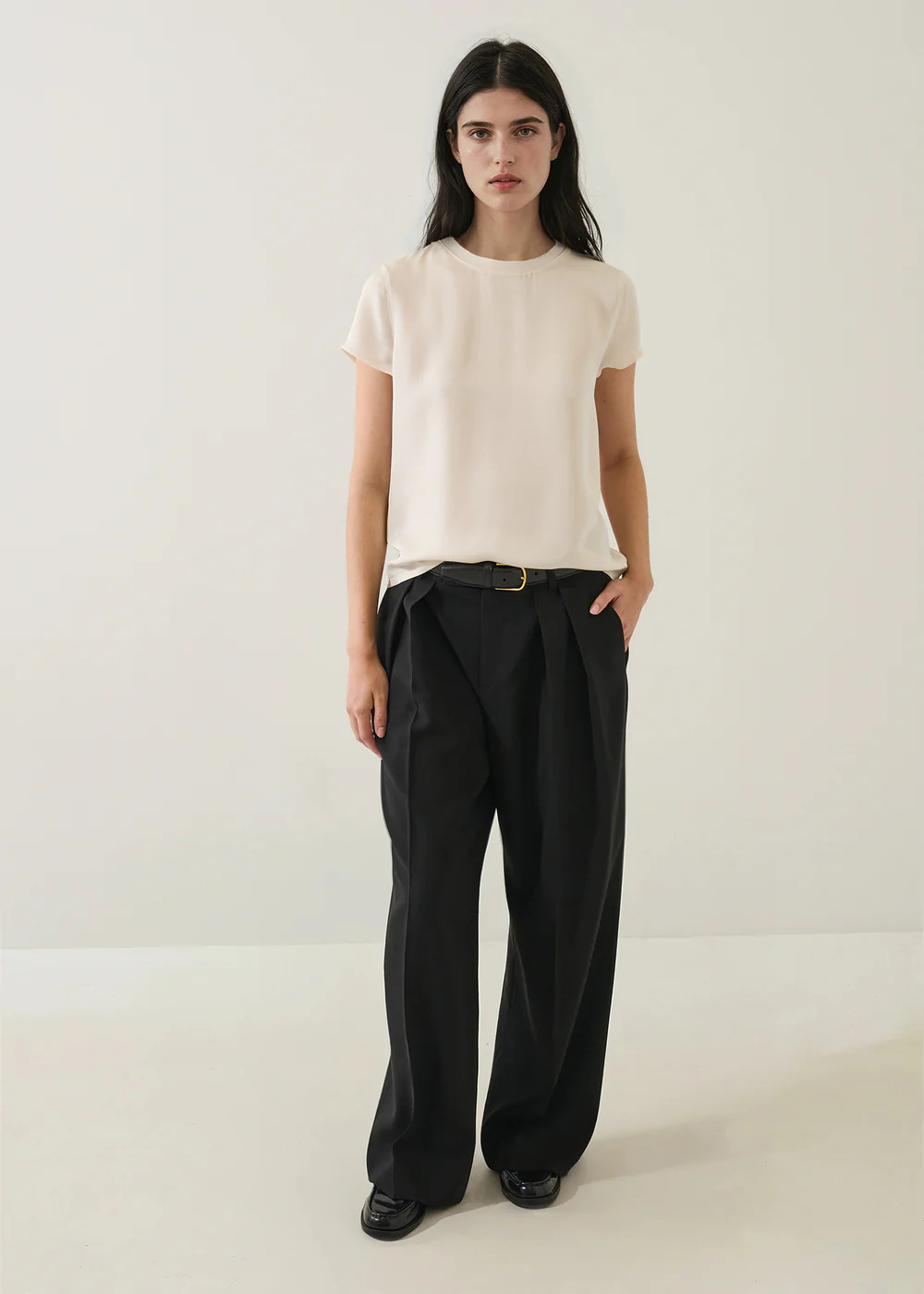 Our silk shirt is crafted from a premium quality mid-weight 100% silk fabric and was inspired by our best-selling t-shirt silhouette. It is cut in a relaxed fit featuring a true shoulder and feminine ribbed neck trim.