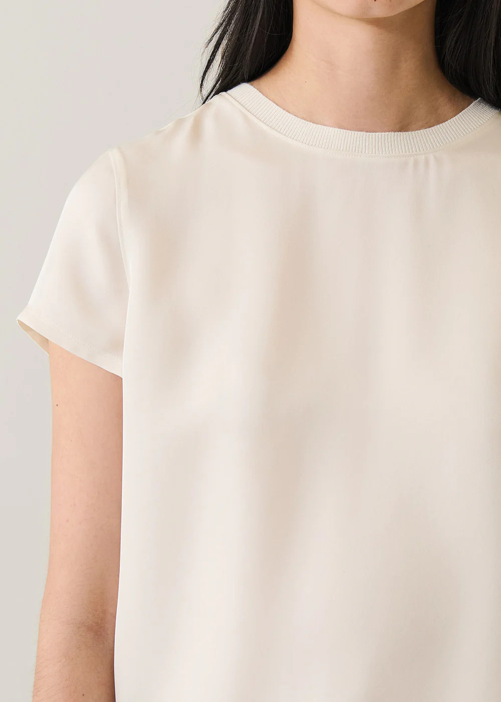 Silk Short Sleeve Crew Neck Tee_ Ecru