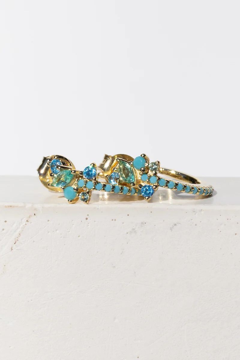 Crafted in 14K vermeil and adorned with multi-cut gemstone turquoise cz, these tiny ear huggie earrings will add a hint of sparkle to your everyday look.