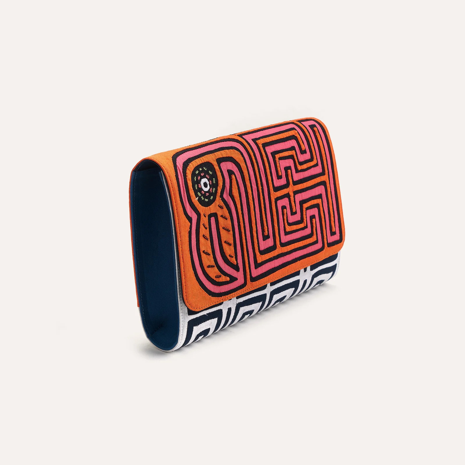 This vibrant and imaginative piece pays tribute to one of the tropics’ most iconic creatures, the toucan. Depicted in an abstract and artistic manner, the Tropicalia Clutch features warm, rich colors that bring the bird's playful spirit to life. It's a bold statement piece that captures the beauty and biodiversity of Colombia’s lush rainforests.