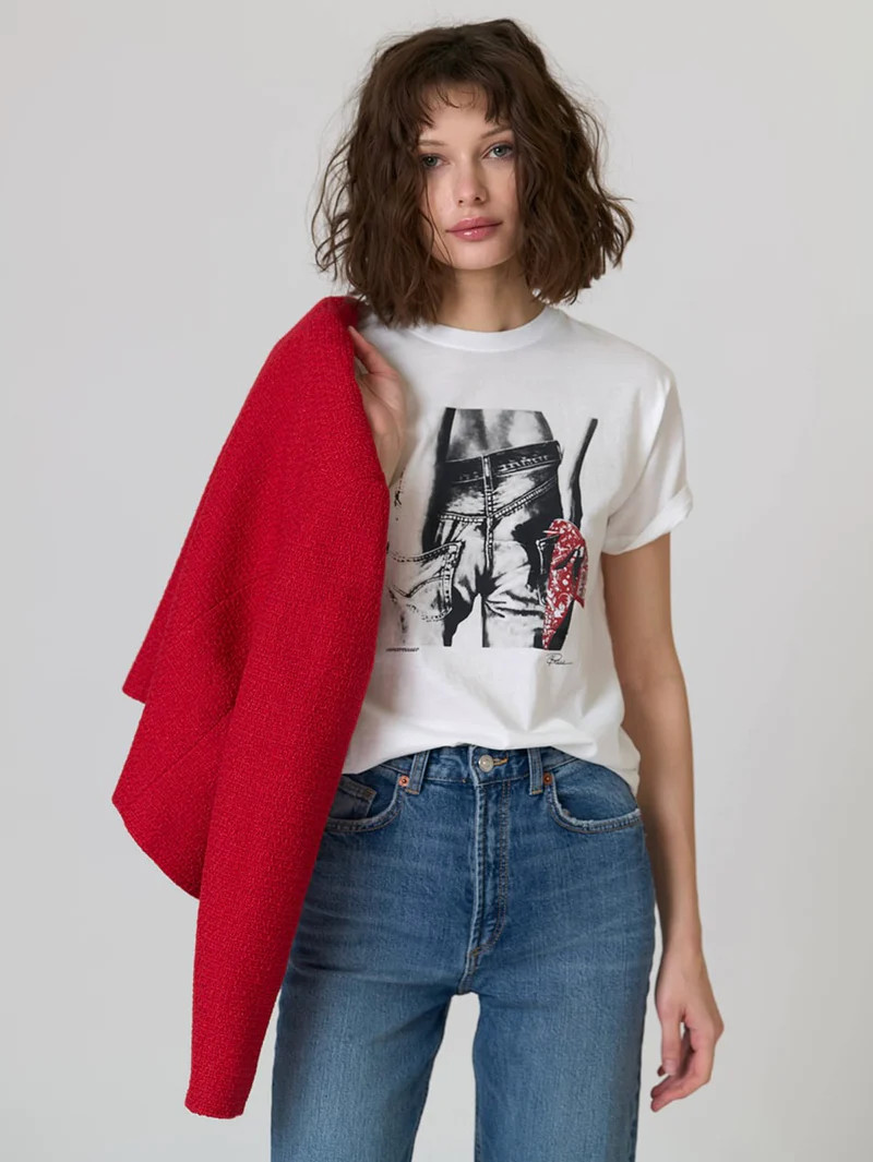 We'd like to introduce you to our Mushie Tee! The name says it all. Constructed from our softest cotton and washed so it feels like it's been in your closet forever. Slightly boxy but also the perfect length to tuck into your jeans. My husband and I call each other Mushie, we love to stay in and watch TV and we love to go out on a date night, just like your new tee.….. I think it's the perfect wearable canvas for my art.