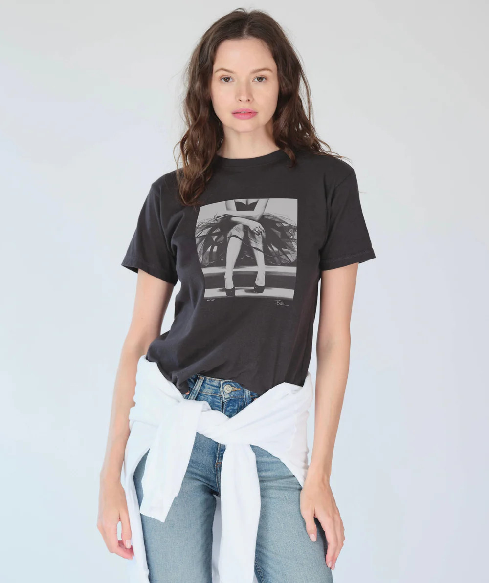 We'd like to introduce you to our Mushie Tee! The name says it all. Constructed from our softest cotton and washed so it feels like it's been in your closet forever. Slightly boxy but also the perfect length to tuck into your jeans. My husband and I call each other Mushie, we love to stay in and watch TV and we love to go out on a date night, just like your new tee. ….. I think it's the perfect wearable canvas for my art.