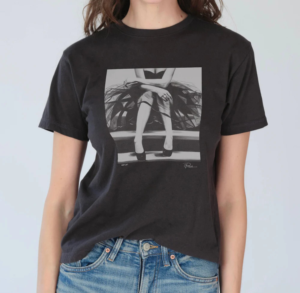 On our worn black, super soft, 100% cotton tee, "Waitlist" is perfect for dressing up or down. Pair it with your favorite jeans or a slip skirt and sneakers, it's so much more fun than any other tee in your closet you'll have to dig it out of the hamper.